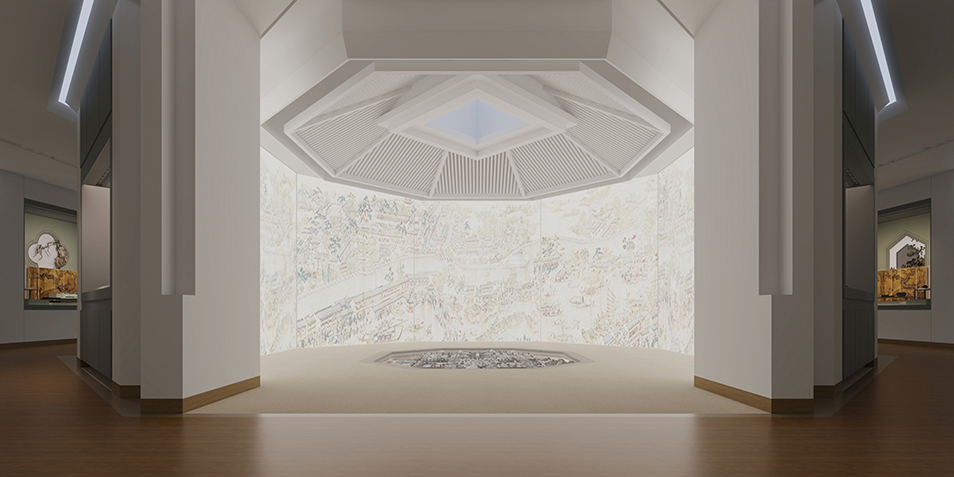 蘇州博物館西館包含蘇州通史展廳、蘇作工藝展廳、書畫館、探索體驗館、國際合作館等展廳。金螳螂文化于一月初中標通史館深化設計與布展實施項目,以模數化設計打造被光包裹的詩意空間。