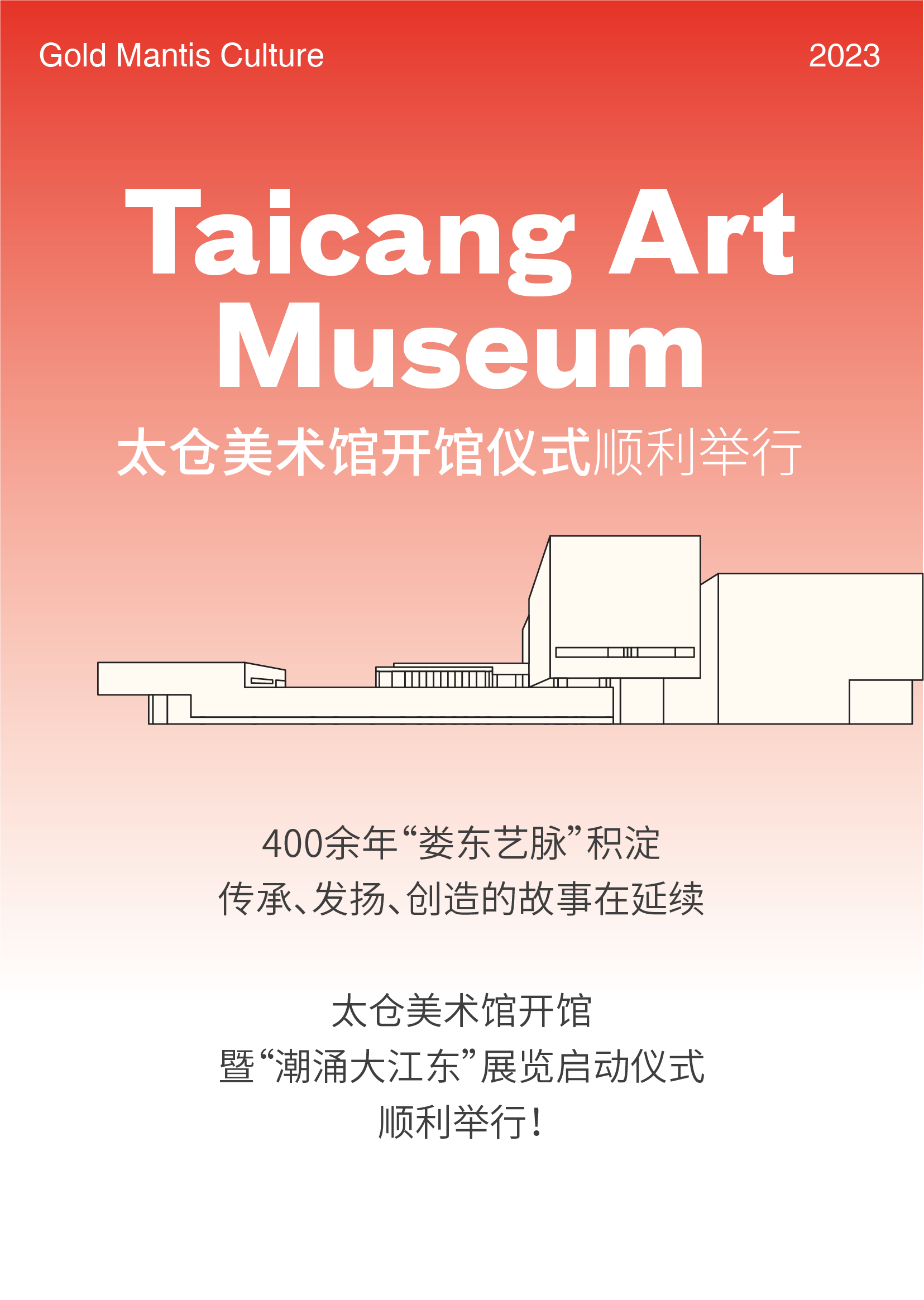 2月8日下午,太倉美術館開館暨“潮涌大江東”展覽啟動儀式舉行。金螳螂文化作為太倉美術館展陳出品單位參與啟動儀式。